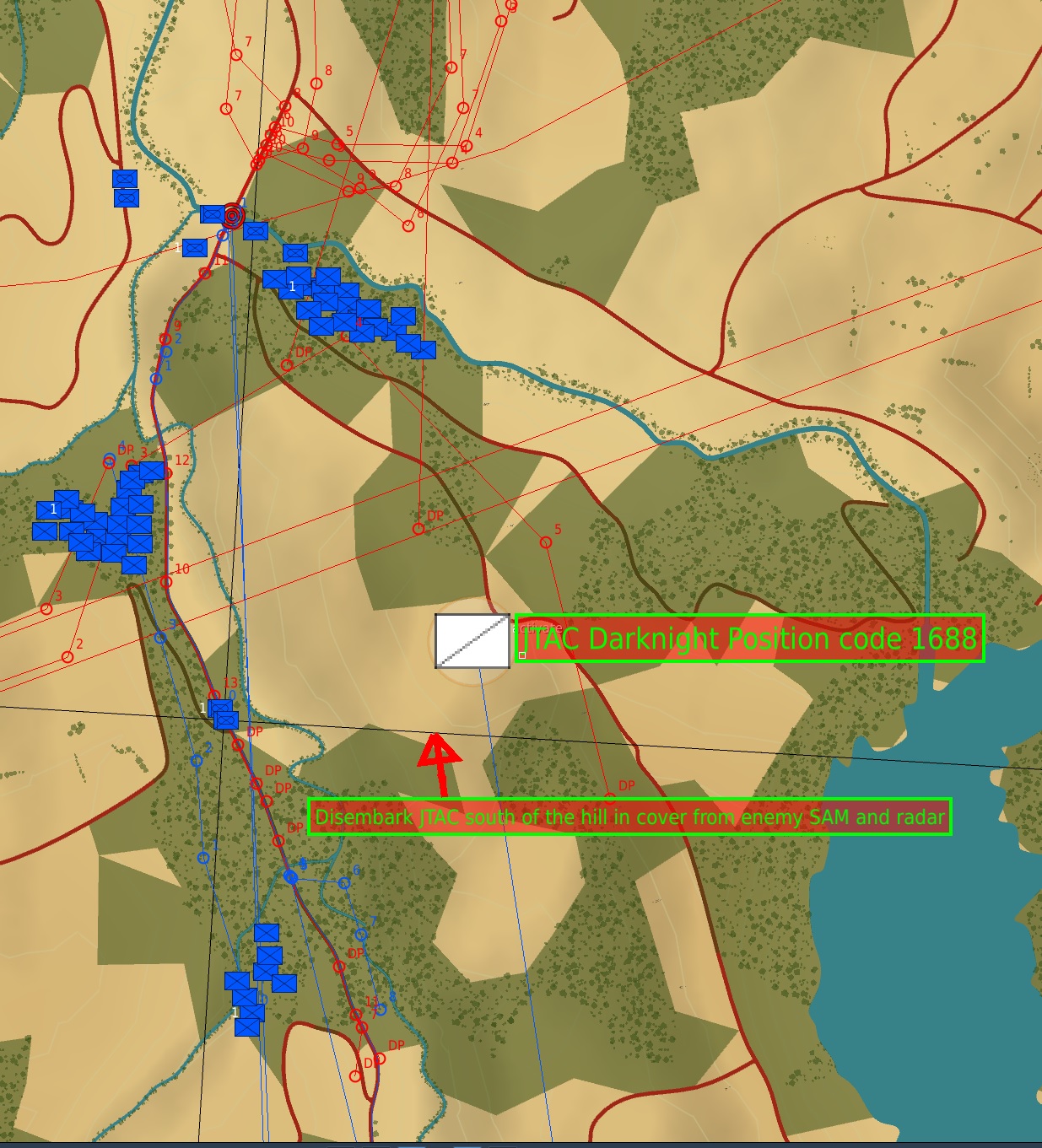 A field hospital/FARP has been set up 6km to the south of bullseye (Northern bridge) in the town of Yioloy. Nitro 5 and Yoda 7 is tasked with medivac, expect heavy casualties, and synchronize with Rage 9 for fire support (Ah 64 flight). Rage 9 is likely to be busy attacking enemy armor so expect limited support. Field hospital /FARP has an active ADF beacon to assist in navigation on 420 khz.