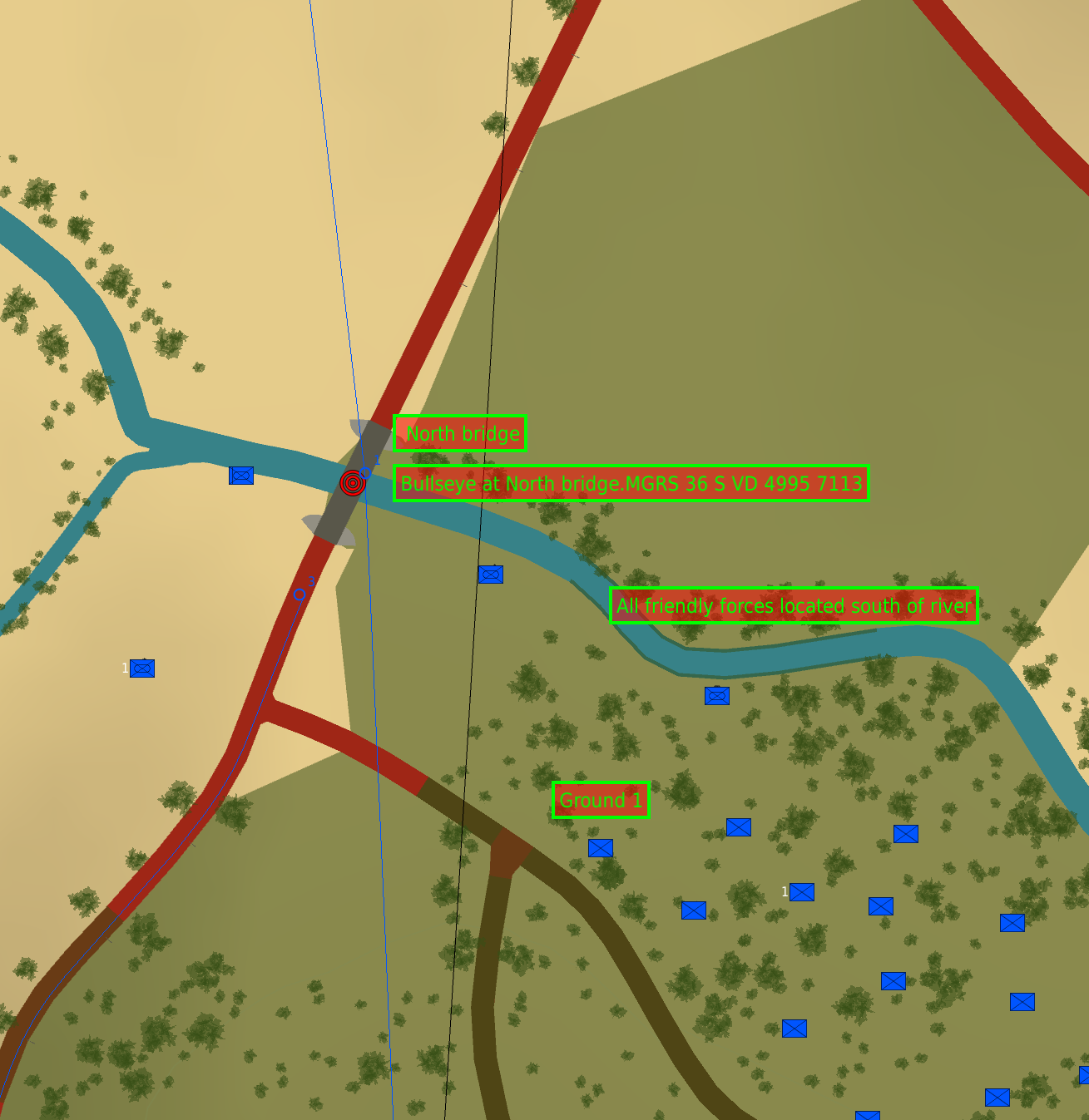 A SEAL team may be deployed to destroy south bridge nr 2 located a further 1000m south. This is a last resort decision if the enemy does not seem to be stoppable. Huey flights Nitro 5 and Yoda 7 will be available to transport the SEAL team in this event. The SEAL team will only be available after the enemy has taken control of the North bridge and will be deployed at the feildhospital/FARP for helicopter embarkment.