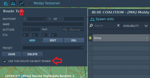 Eftersom alla steerpoints över hela kartan finns på alla dynamiska slots, så rekommenderas det att lägga till en custom route med route tool. Innan du joinar in på en slot, välj verktyget, lägg till alla steerpoints, välj “use this route on next spawn”, sen joina.
