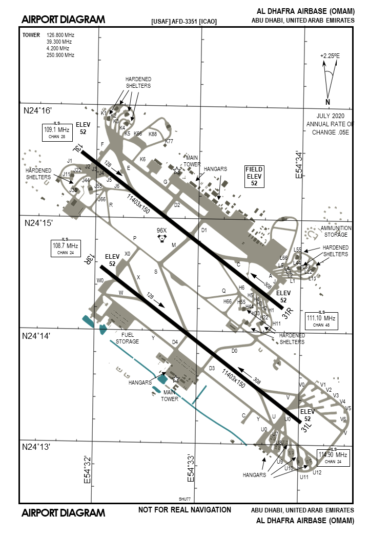 F-16C Alert 15 Al Dhafra (Parking 91-94 – SE edge of ramp N of Rwy 31R) INDY91: Pahi INDY92: Undefined INDY93: Widen INDY94: Hofftari
