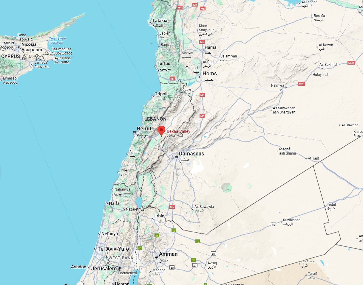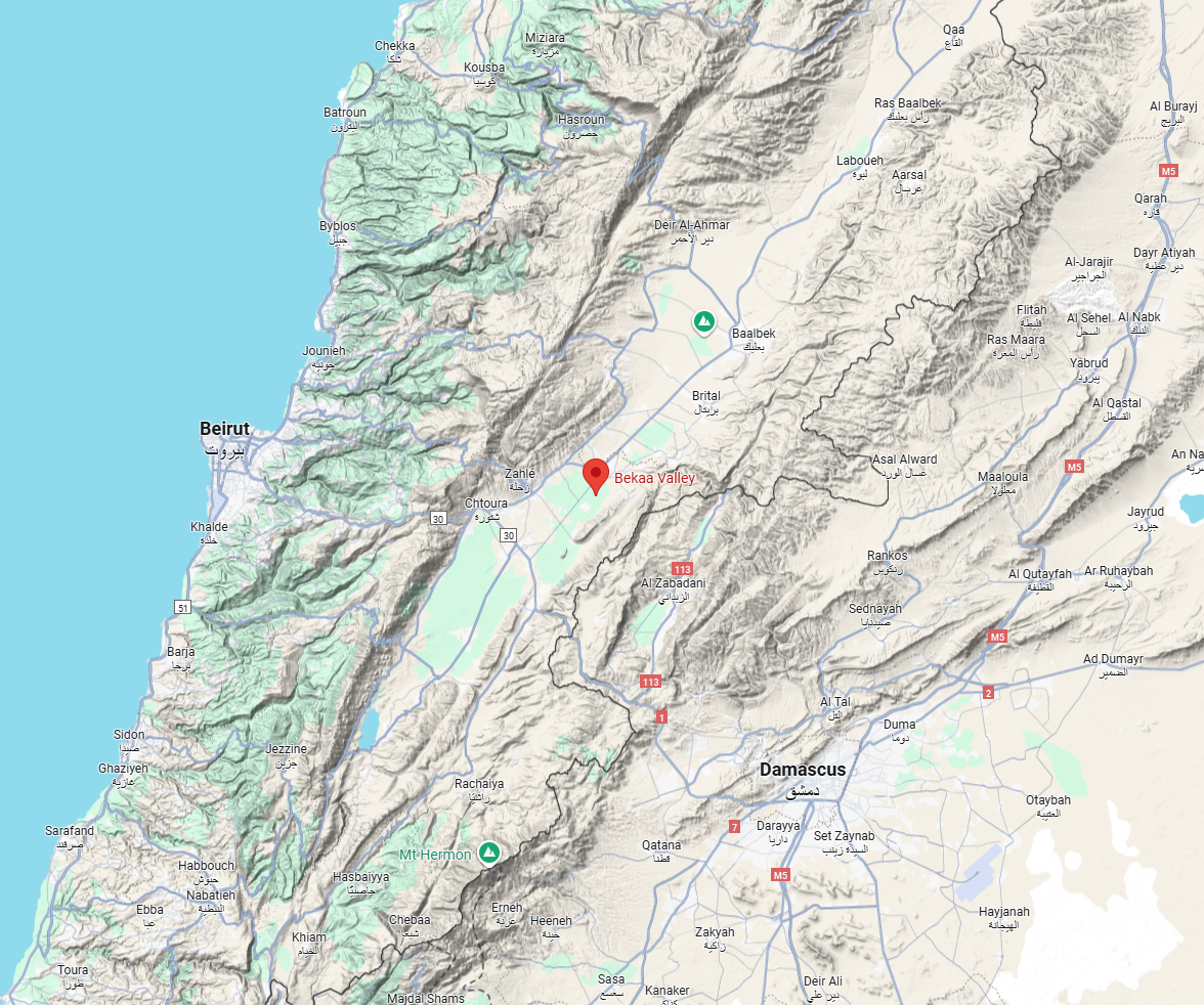 Beqaa Valley, Lebanon, and surrounding countries.