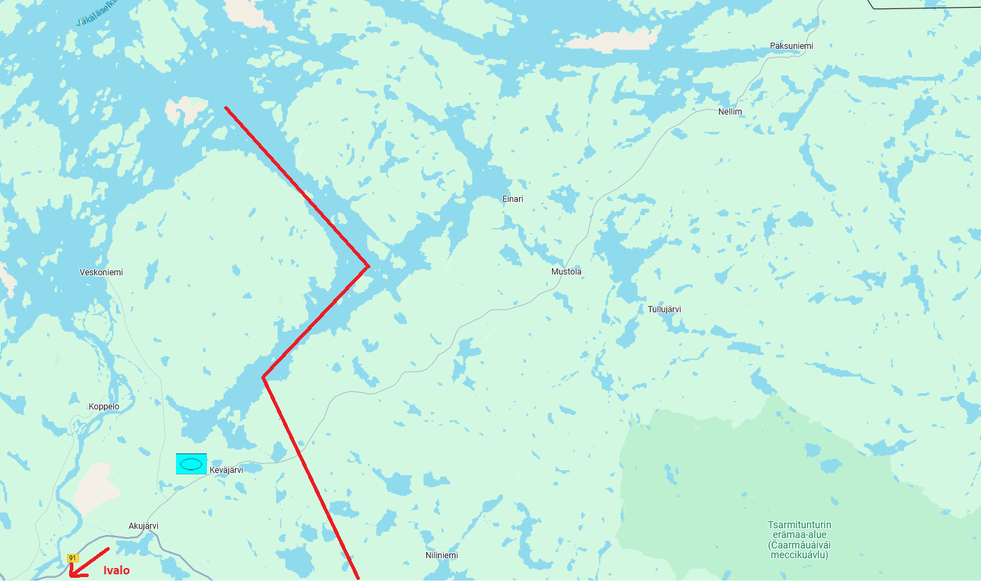 along road R969, as there is forest next to the road and little room for army operations or hideouts. All waypoints are along the road 969 between Ivalo and Nellim, so you basically follow that road.