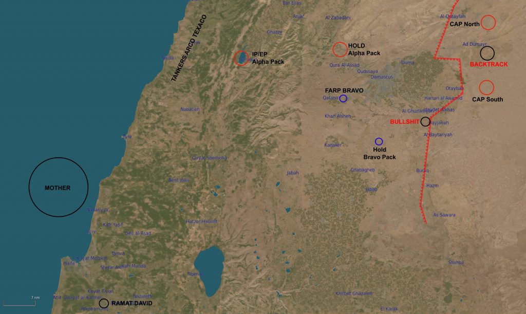 BACKTRACK (MGRS: BT): 23nm ENE of DAMASCUS. Next to mountain ridge. Al-Dumays airfield.