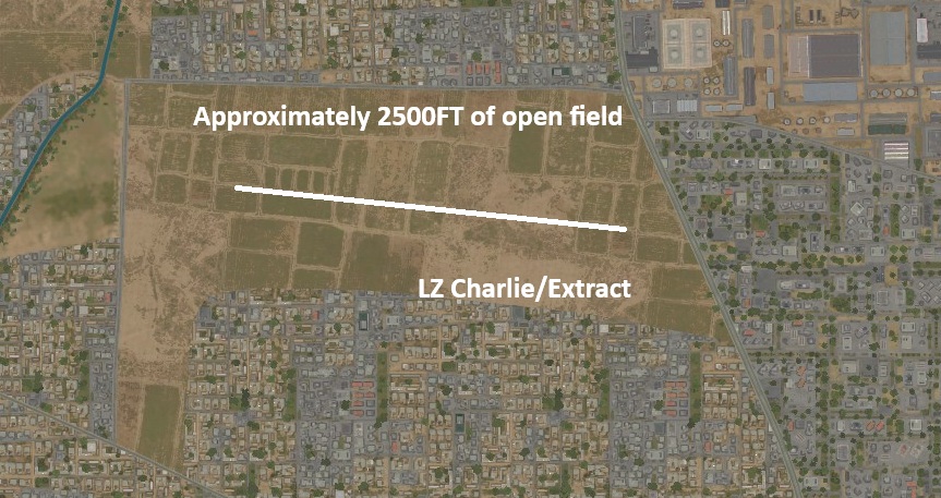 2. When objectives have been secured, teams will return to LZ Charlie for extraction. C-130’s will remain on station until assault teams needs airlift out, at this point PEGASUS will perform a short landing/take off in field west of Raqqa hospital. Each C-130 will need to pickup their respective team (Alpha, Bravo or Charlie) flight lead will distribute the landing order and execution.
