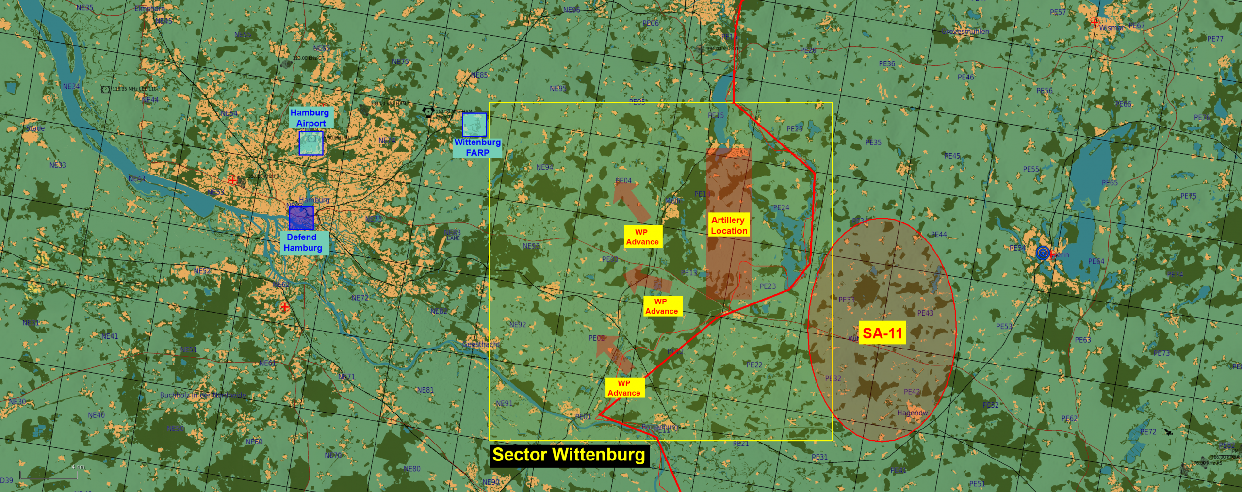 Prevent the enemy ground forces to advance through Sector Wittenburg. Locate and neutralize enemy indirect fire support to cripple their long-range capabilities. Deny enemy strike packages by all means necessary from achieving effects against Bremerhaven and Hamburg.