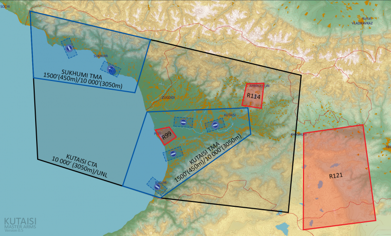 Since the CTR, TMA and CTA will be open (Changed to only CTR. But still>) please refresh your memory regarding the airspace structure around Kutaisi. MA Wiki Airport procedures