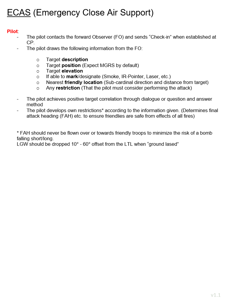 Basic ECAS procedures for all flights registered for Syrian Dawn – Road to Homs and expected to carry out ECAS missions.